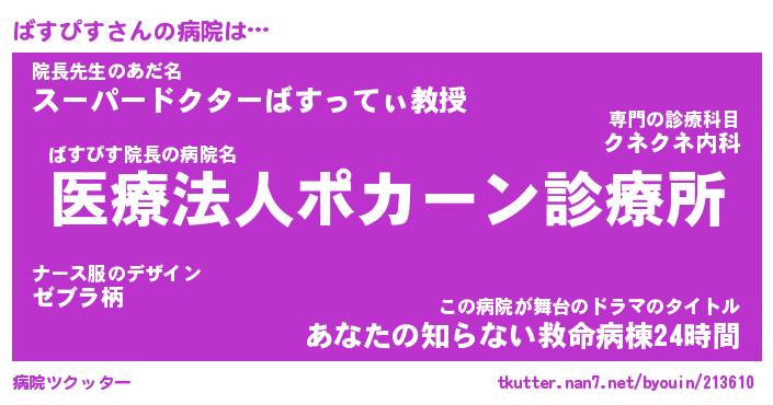 | 意味不明あだ名 | 『ペロリンばすぴす』『永久保存ばすぴす』 |