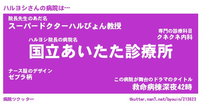| 意味不明あだ名 | 『ペロリンハルヨシ』『永久保存ハルヨシ』 |