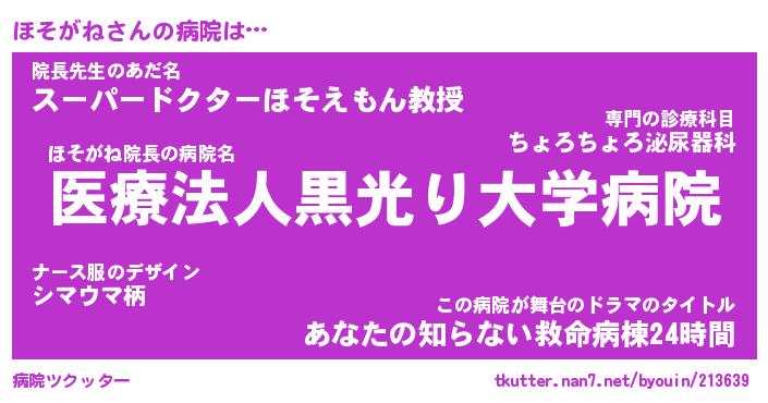 | 意味不明あだ名 | 『ペロリンほそがね』『永久保存ほそがね』 |