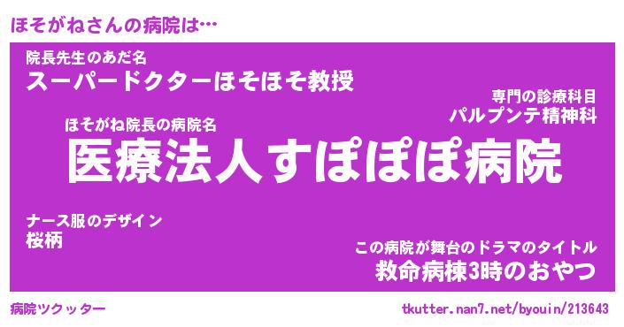 | 胡散臭い通販商品みたいなあだ名 | 『億万長者になれる霊験あらたかなお札…その名も「ほそがね」』 |