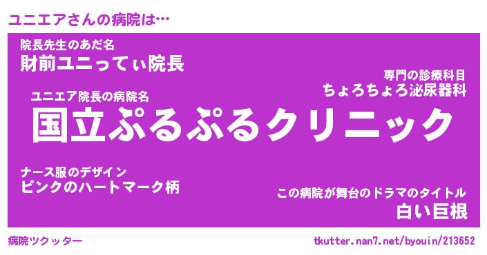 | ヘコむあだ名 | 『ユニにゅー』『酢こんぶ』『ユニを』 |