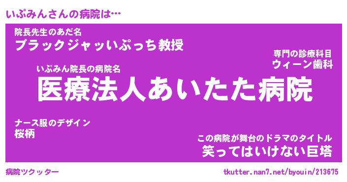 | 意味不明あだ名 | 『ペロリンいぷみん』『永久保存いぷみん』 |