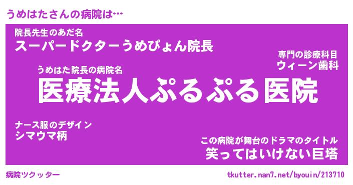 | 意味不明あだ名 | 『ペロリンうめはた』『永久保存うめはた』 |