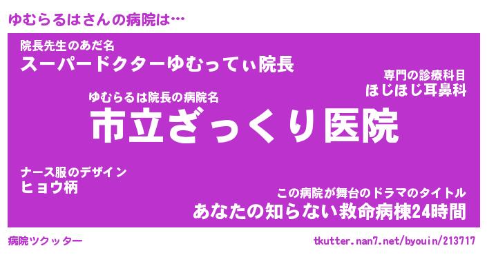 | 女子向けラノベタイトル風あだ名 | 『(仮)ゆむらるはのやんごとなき事情』 |