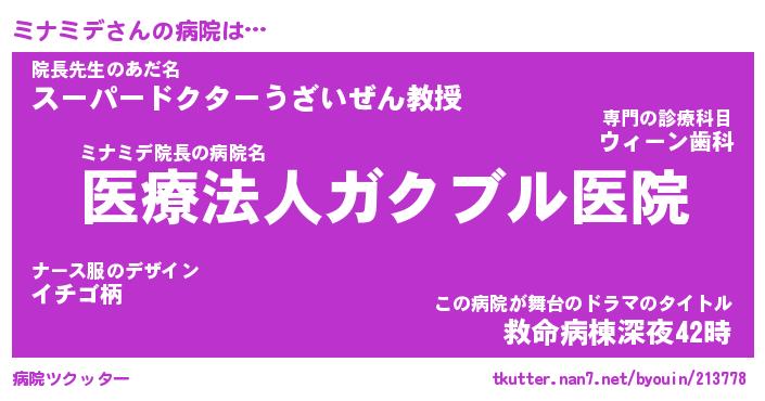 | ヘコむあだ名 | 『ミナにゅー』『牛乳』『ミナぷりん』 |