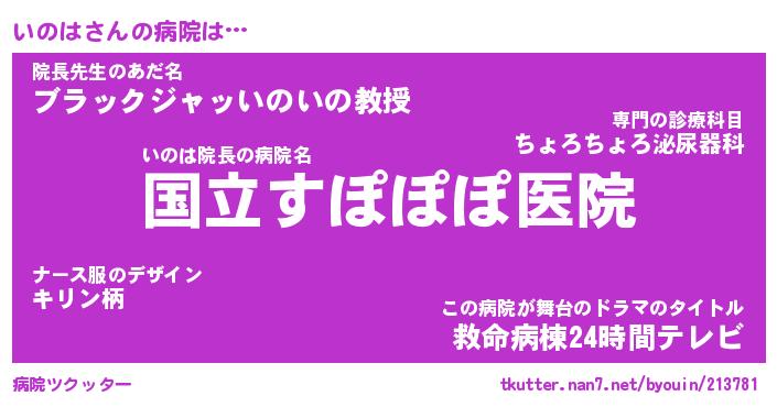 | ヘコむあだ名 | 『いのもー』『なまこ酢』『いのっぺ』 |