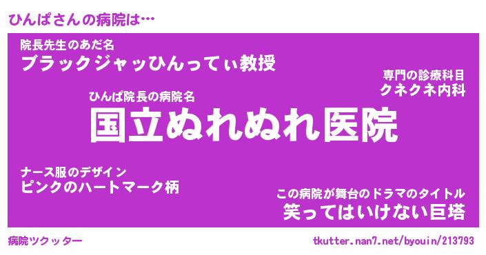 | ヘコむあだ名 | 『ひんもー』『なまこ酢』『ひんっぺ』 |