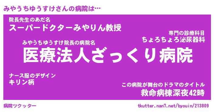 | 欧米人風あだ名 | 『マイケルみやうちゆうすけ』 |
