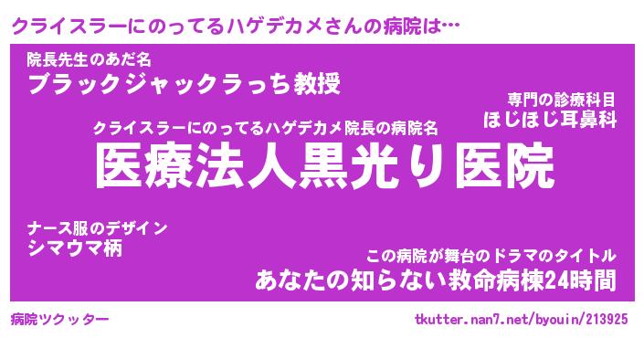 | 胡散臭い通販商品みたいなあだ名 | 『億万長者になれるブレスレット…その名も「クライスラーにのってるハゲデカメ」』 |