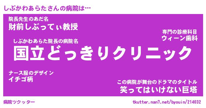 | 肩書あだ名 | 『しぶかわあらた御曹司』 |