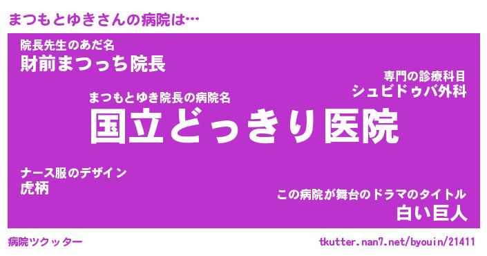 | 恥ずかしいあだ名 | 『プリティーまつもとゆき』『まつっちょ』 |
