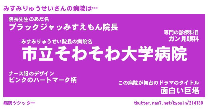 | 男性向けラノベタイトル風あだ名 | 『みすみりゅうせいの憂鬱』 |