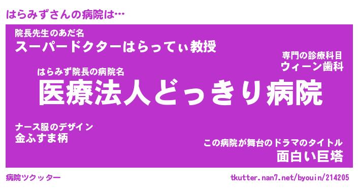 | ピコ太郎風あだ名 | 『ハコ八郎』『ピハ史郎』『ハラ太郎』 |