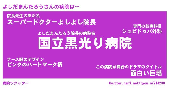 | 男性向けラノベタイトル風あだ名 | 『よしだまんたろうの憂鬱』 |