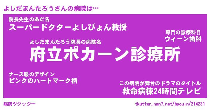 | ポケモン風あだ名 | 『ヨシチュウ』『ヨシダダネ』 |
