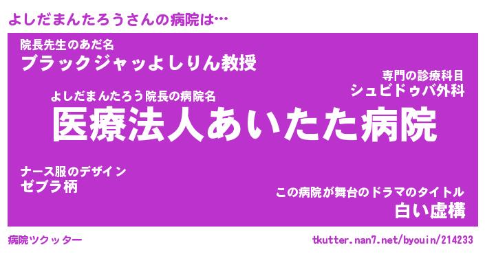| 肩書あだ名 | 『よしだまんたろう御曹司』 |