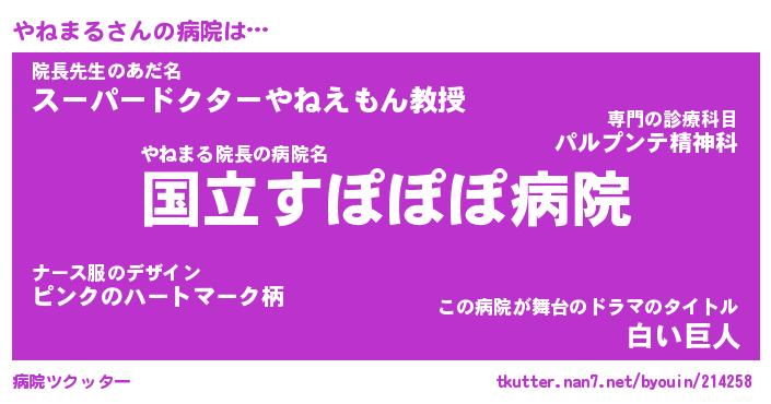 | ヘコむあだ名 | 『やねもー』『つくし』『やねお』 |