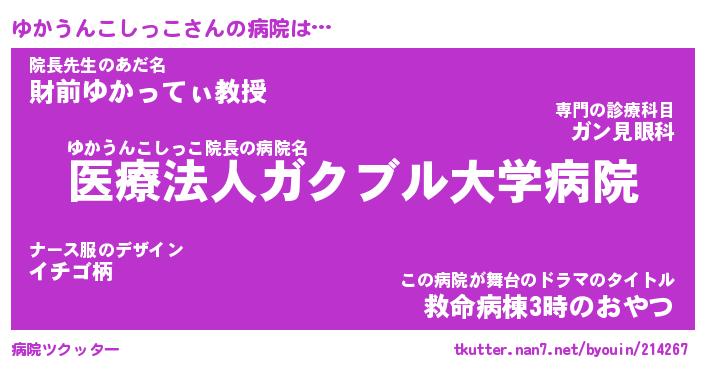 | ピコ太郎風あだ名 | 『ユコ史郎』『ピユ八郎』『ユカ太郎』 |