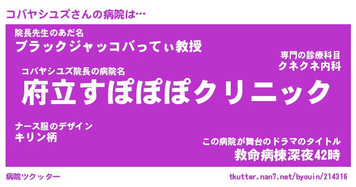 | ヘコむあだ名 | 『コバもー』『つくし』『コバっぺ』 |