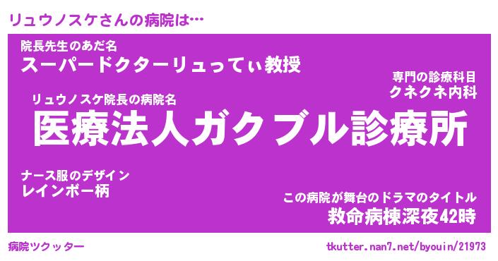 | ヒーロー風カッコイイあだ名 | 『スーパーリュウノスケ』『幻影騎士リュ』 |