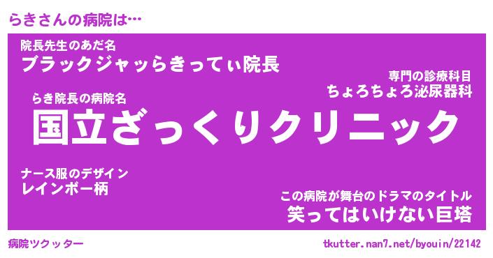 | 男性向けラノベタイトル風あだ名 | 『らきの憂鬱』 |