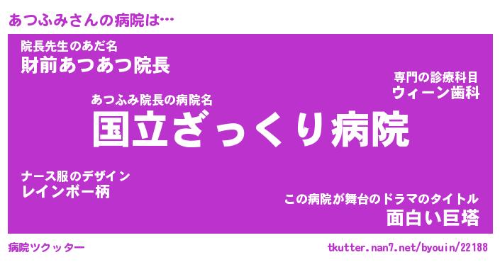 | 男性向けラノベタイトル風あだ名 | 『あつふみの憂鬱』 |