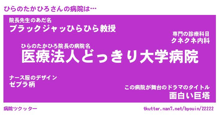 | 肩書あだ名 | 『ひらのたかひろ御曹司』 |
