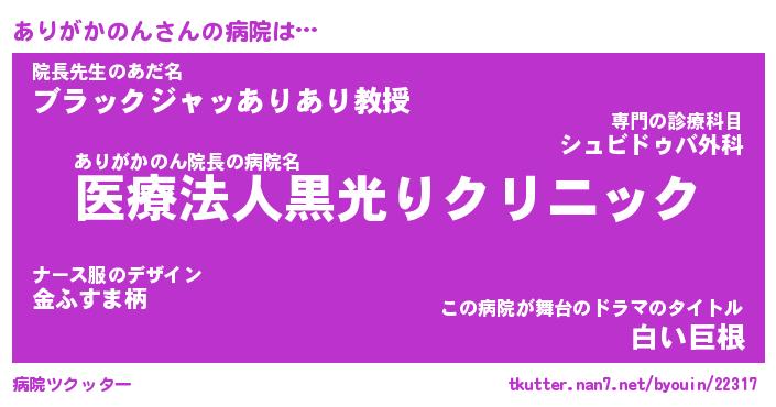 | 胡散臭い通販商品みたいなあだ名 | 『億万長者になれるブレスレット…その名も「ありがかのん」』 |