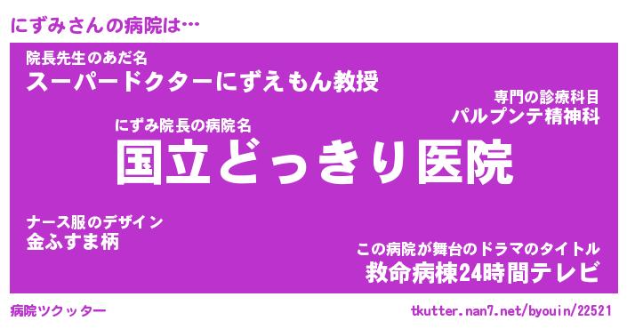 | 男性向けラノベタイトル風あだ名 | 『にずみの憂鬱』 |