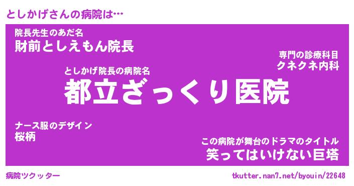 | 肩書あだ名 | 『としかげ御曹司』『としかげ国家主席』 |