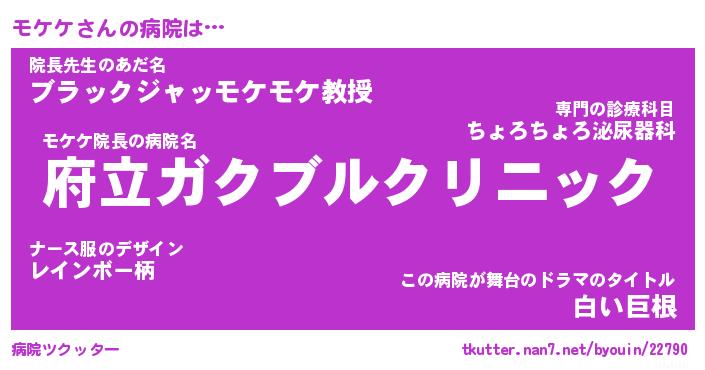 | 男性向けラノベタイトル風あだ名 | 『モケケの憂鬱』 |
