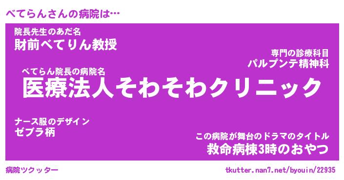 | 呪いの病院の様だw …「あさぎ」 | 3月30日 10:32 |