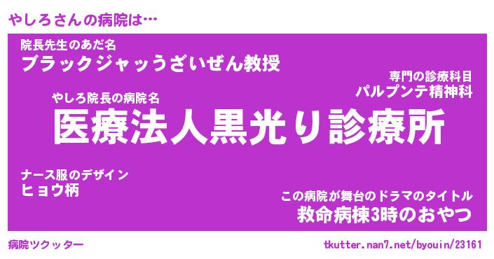 | ヒーロー風カッコイイあだ名 | 『スーパーヤシロ』『ウルトラやしろマン』 |