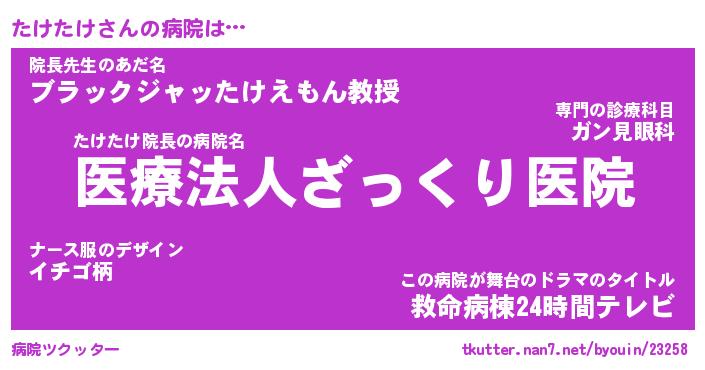 | ヒーロー風カッコイイあだ名 | 『スーパータケタケ』『幻影騎士タケ』 |