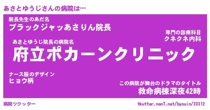| ヒーロー風カッコイイあだ名 | 『スーパーアサトユウジ』『幻影騎士アサ』 |