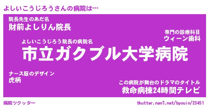 | ヒーロー風カッコイイあだ名 | 『スーパーヨシイコウジロウ』 |