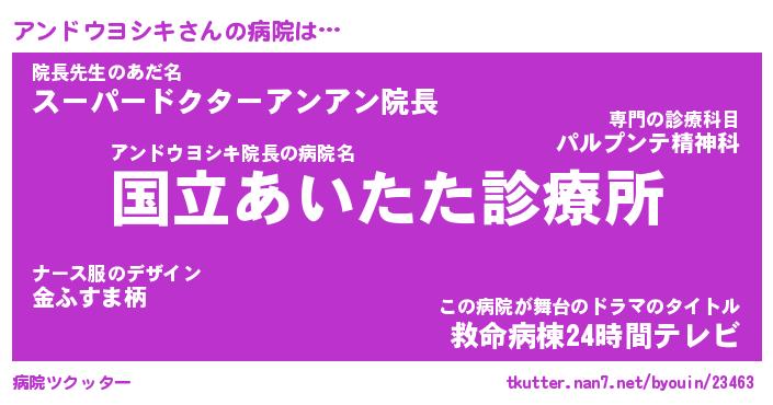 | 肩書あだ名 | 『アンドウヨシキ御曹司』 |