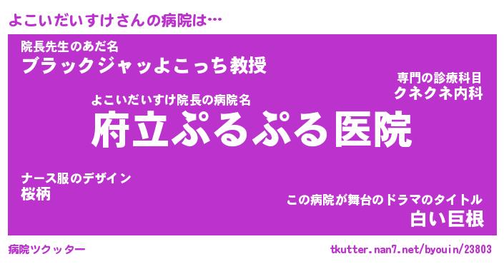 | 男性向けラノベタイトル風あだ名 | 『よこいだいすけの憂鬱』 |
