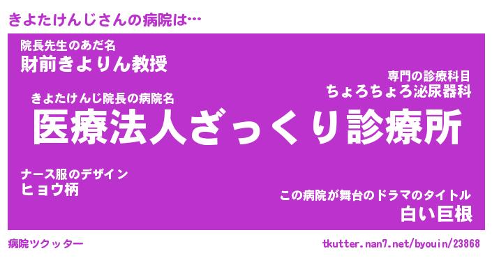 | 伝説のあだ名 | 『封印されしスナイパーきよたけんじ』 |