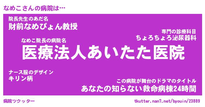 | 欧米人風あだ名 | 『マイケルなめこ』『なめこクリステル』 |