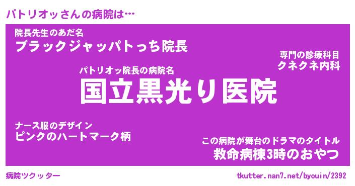 | 2回繰り返すあだ名 | 『パトパト』『パパトト』『くらくら』 |