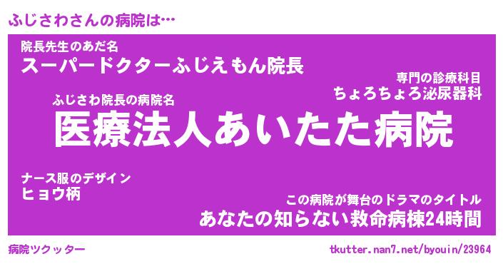 | 意味不明あだ名 | 『ペロリンふじさわ』『永久保存ふじさわ』 |