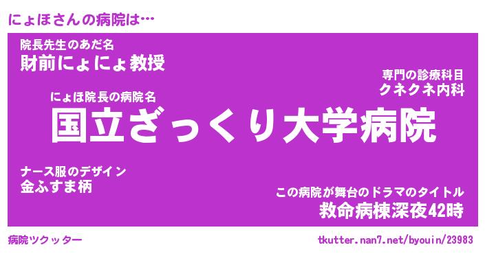 | 伝説のあだ名 | 『伝説のスナイパーにょほ』 |
