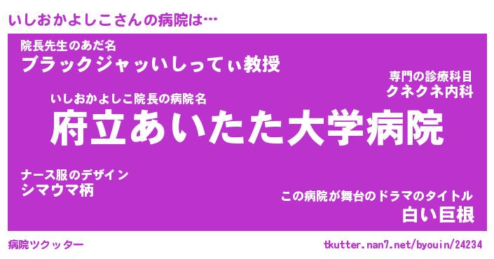 | 伝説のあだ名 | 『不死鳥のスナイパーいしおかよしこ』 |
