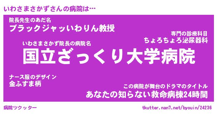 | 男性向けラノベタイトル風あだ名 | 『いわさまさかずの憂鬱』 |
