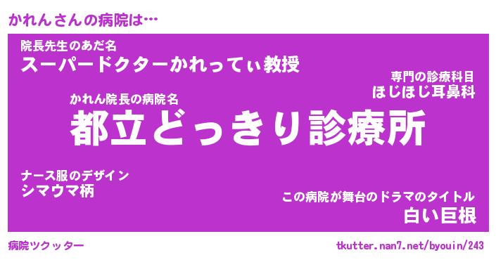 | 2回繰り返すあだ名 | 『かれかれ』『かかれれ』『いらいら』 |
