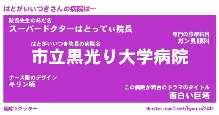 | ヒーロー風カッコイイあだ名 | 『スーパーハトガイイツキ』 |