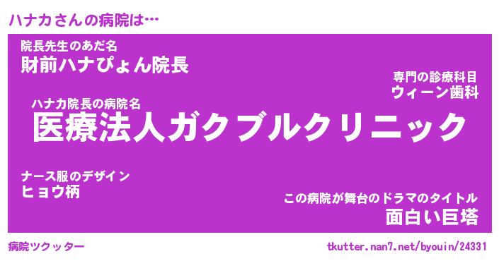| ポケモン風あだ名 | 『ハナチュウ』『ハナカダネ』 |