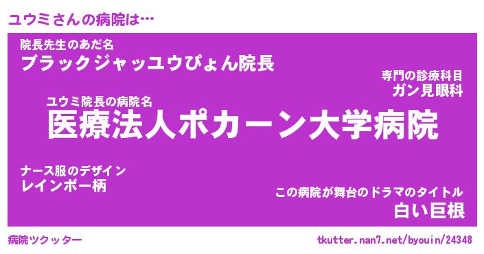 | ヘコむあだ名 | 『ユウにゅー』『なまこ酢』 |