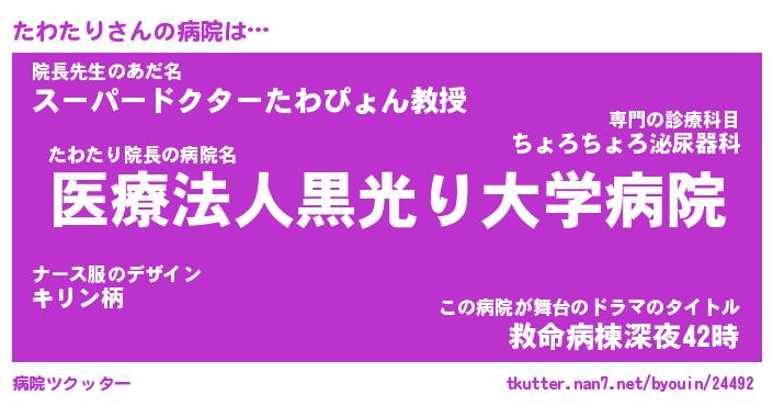| ヘコむあだ名 | 『たわにー』『牛乳』『たわ太郎』 |